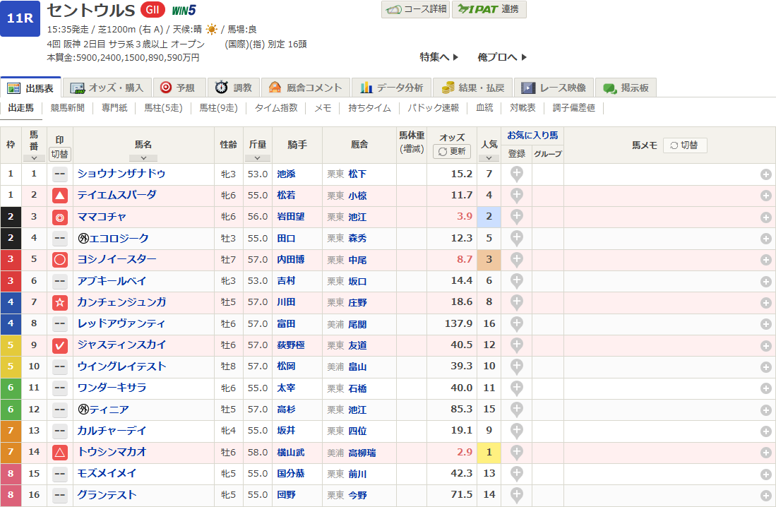 はいどうもー!9/7に阪神競馬場で行われますセントウルSの予想を発表していこうと思います!